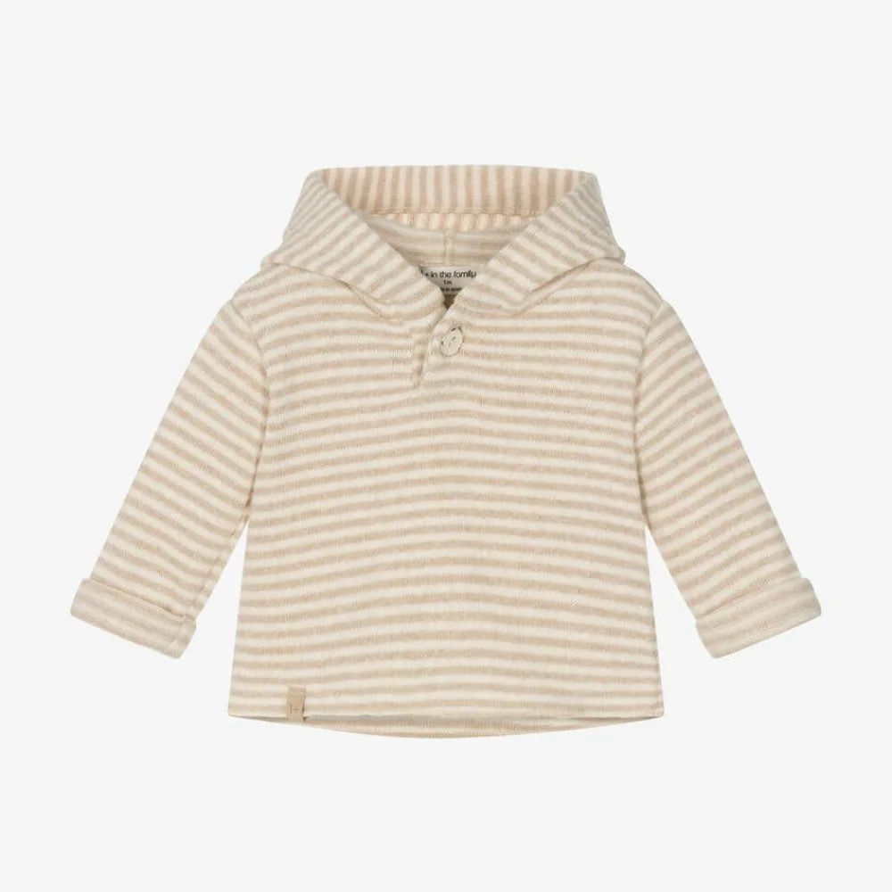 1 + in the family Tops*Ivory & Beige Stripe Cotton Baby Hoodie