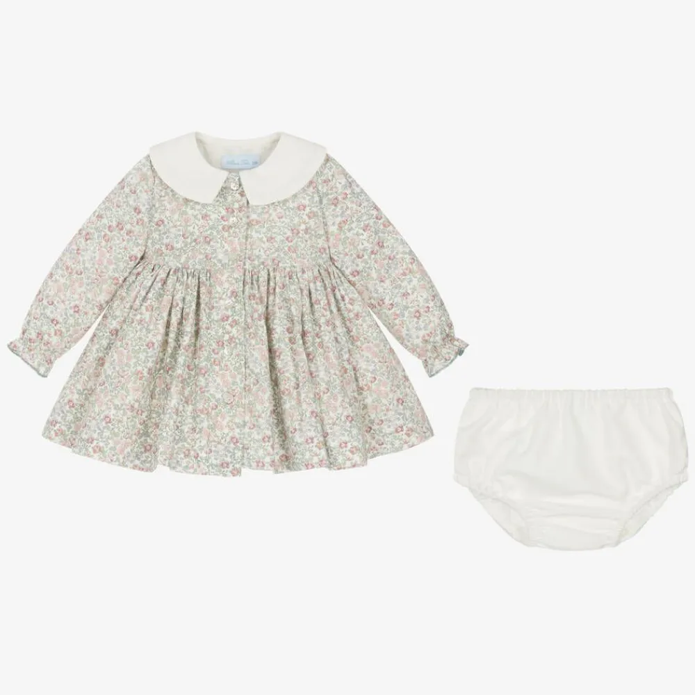 Abuela Tata Dresses*Baby Girls Ivory Floral Print Cotton Dress Set