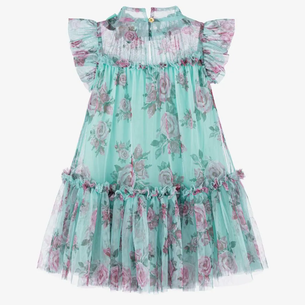 Angels Face Dresses*Girls Blue Floral Dress Aqua