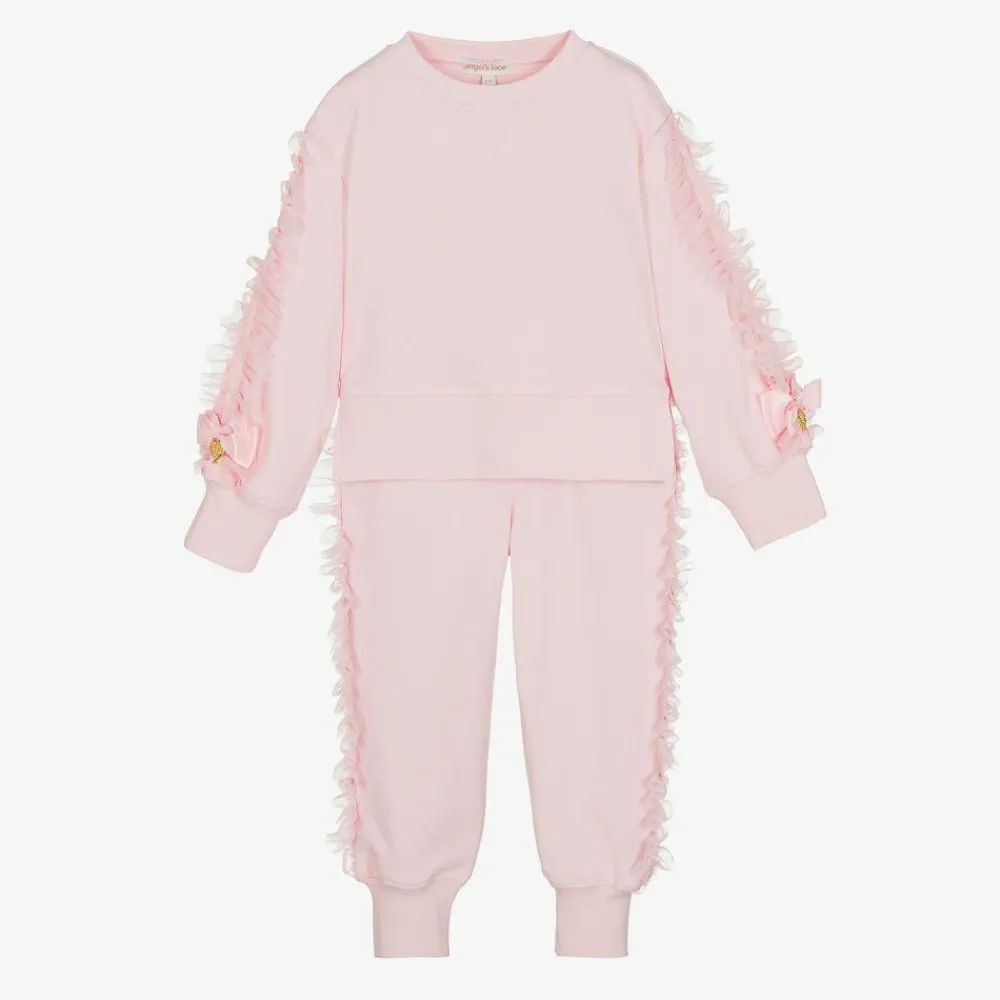 Angels Face Tracksuits*Girls Pink Cotton & Tulle Frill Tracksuit