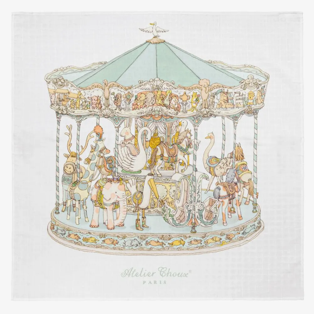 Atelier Choux Paris Sleeping Accessories*Ivory & Green Carousel Swaddle (97cm)