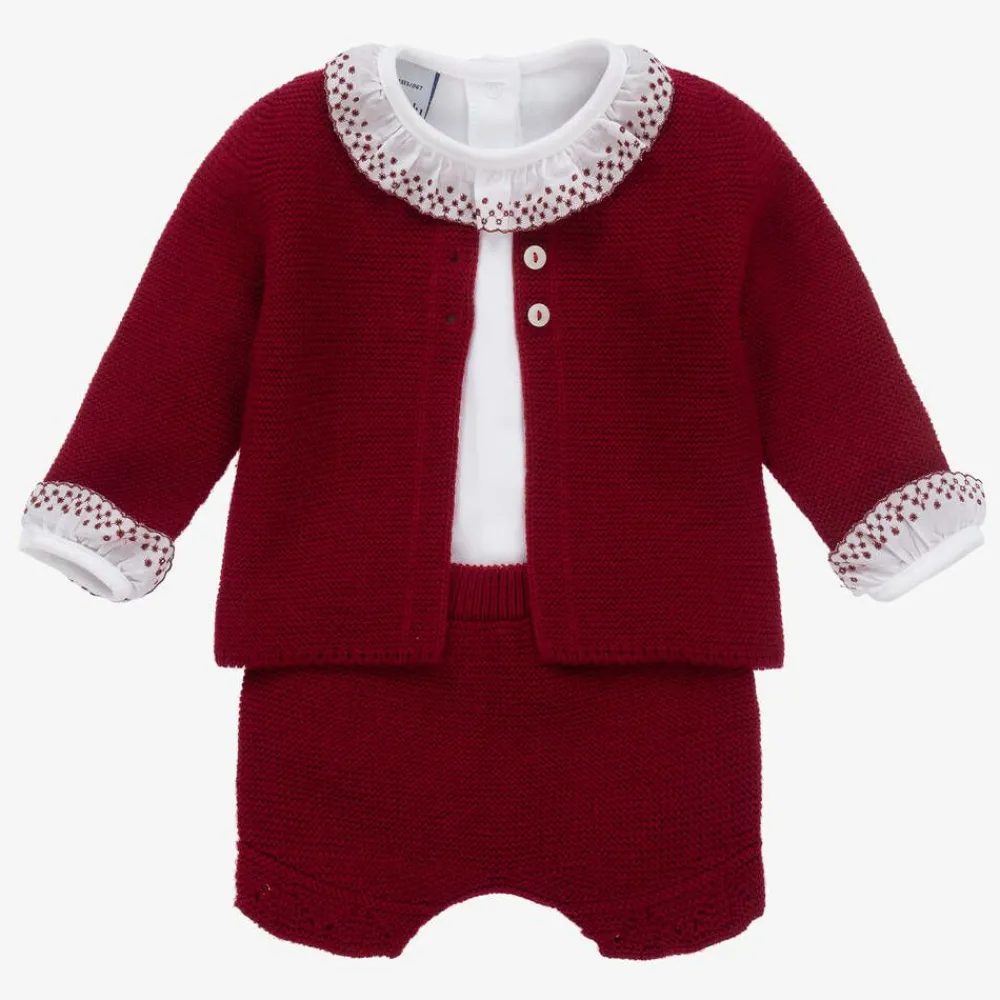Babidu Outfit Sets*Baby Girls Red Knitted Shorts Set