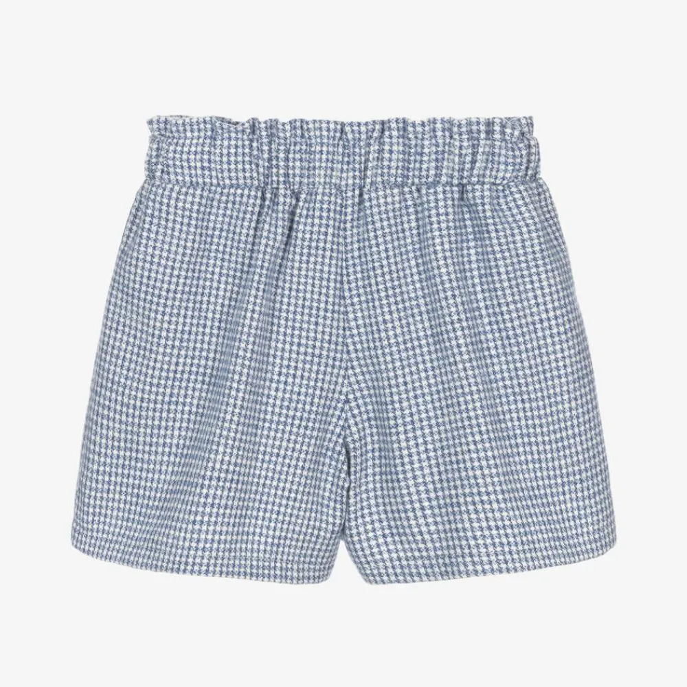 Balloon Chic Shorts*Girls Blue Houndstooth Cotton Shorts