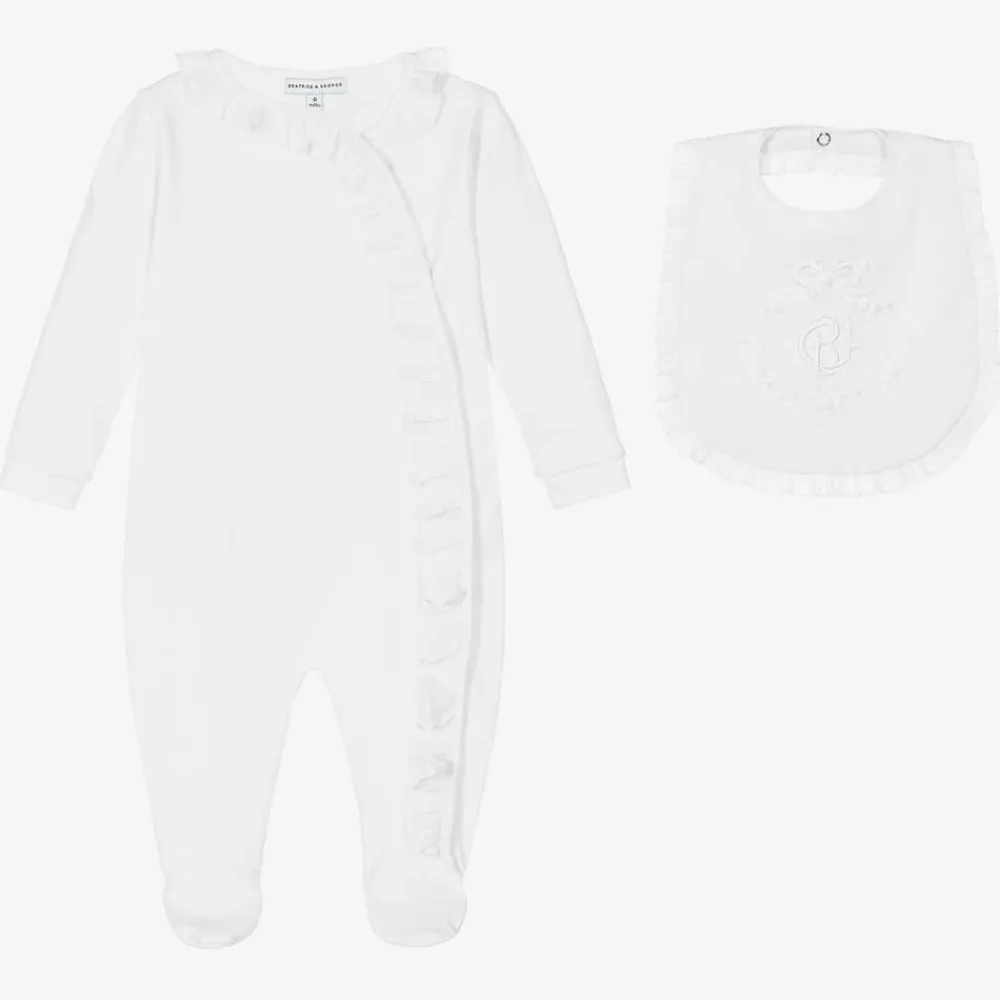 Beatrice amp; George Gifts|Babysuits*White Cotton Babygrow & Embroidered Bib Set