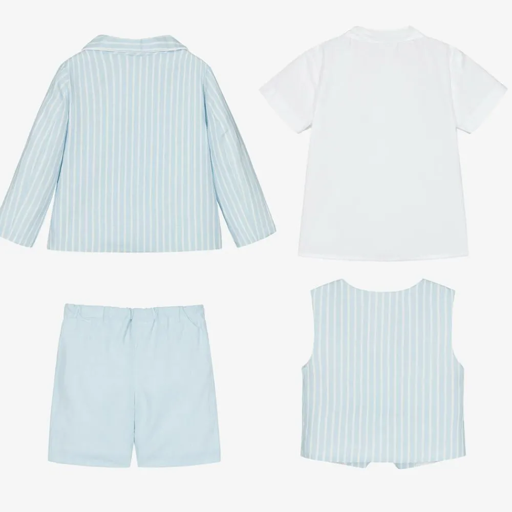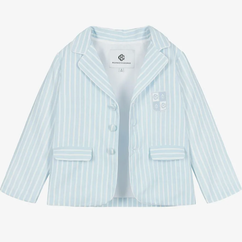 Beatrice amp; George Suits*Boys Blue Stripe Cotton & Linen Shorts Suit