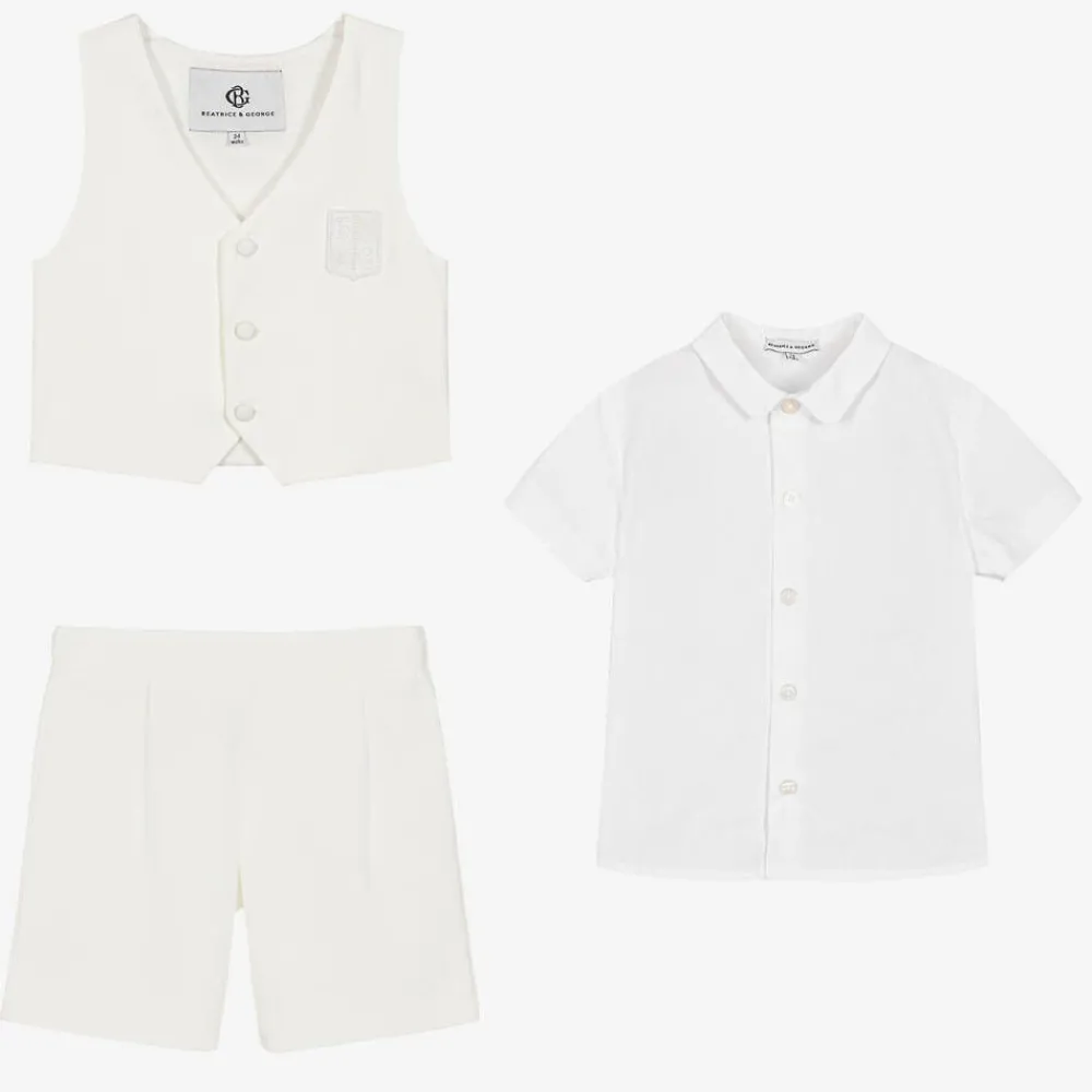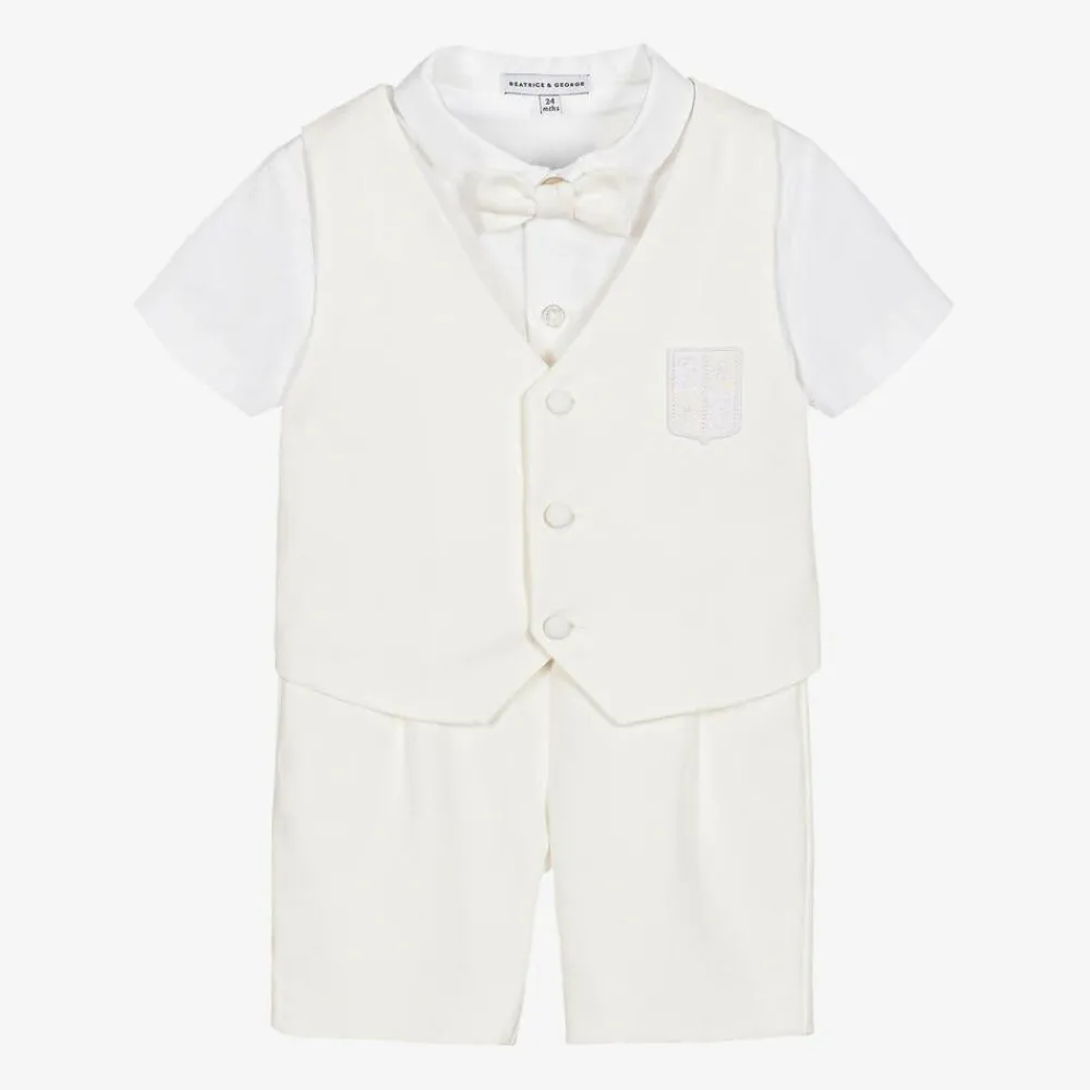 Beatrice amp; George Suits|Suits*Boys Ivory Viscose Shorts Suit