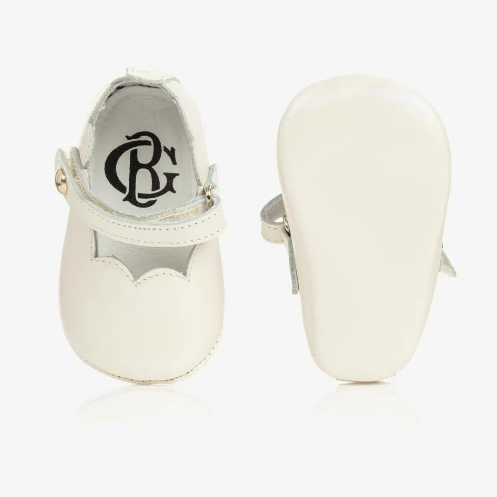 Beatrice amp; George Traditional Shoes*Baby Girls Ivory Leather Pre-Walker Shoes