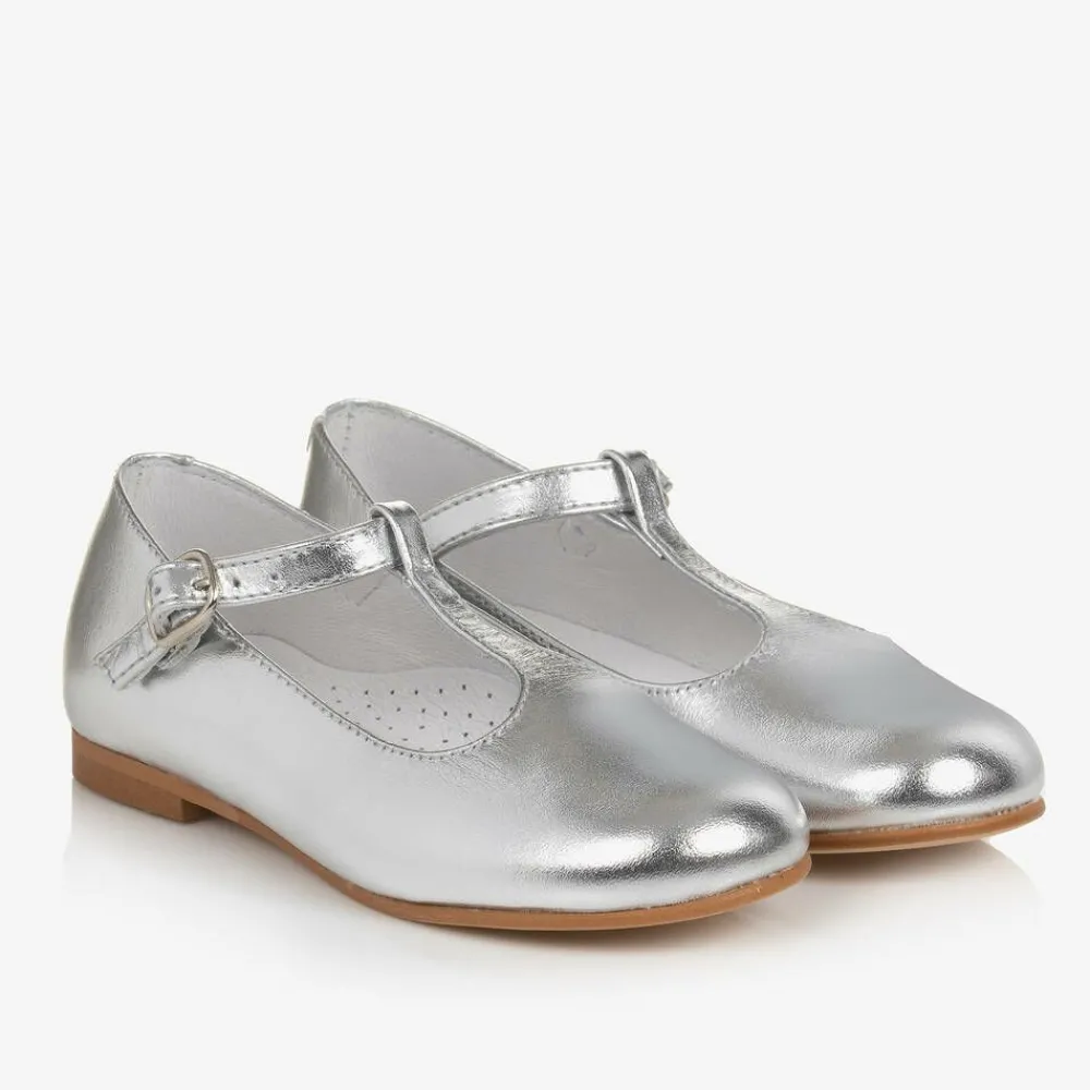 Beatrice amp; George Traditional Shoes|Bar Shoes*Girls Silver Leather T-Bar Shoes