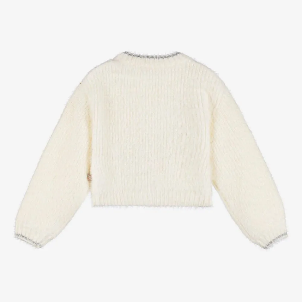 Billieblush Tops*Girls Ivory Fluffy Sequinned Cardigan