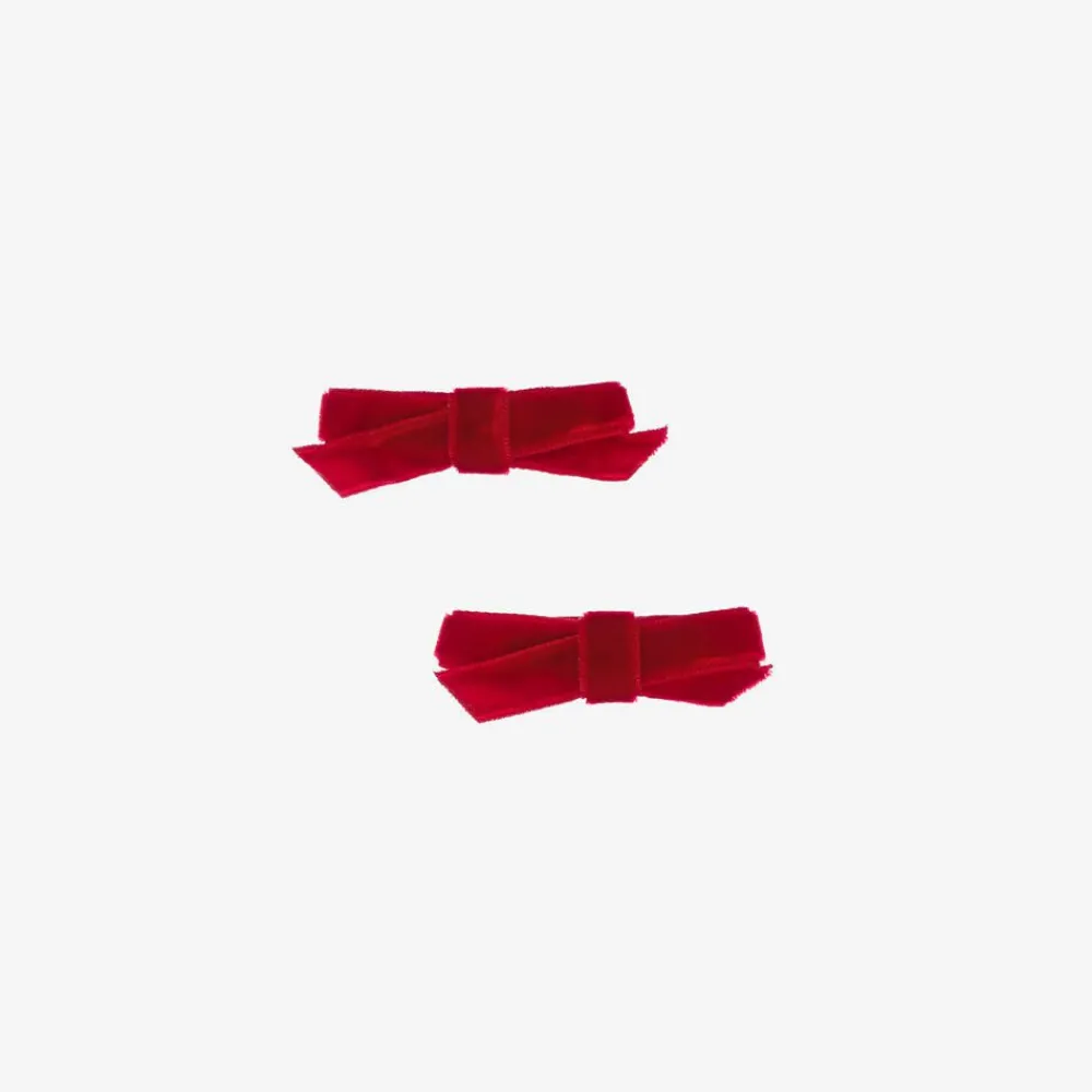 A pack of two red velvet bow hair clips for girls by Bowtique London. A lovely finishing touch to complete an outfit, the bow is set on a metal clip for easy use.