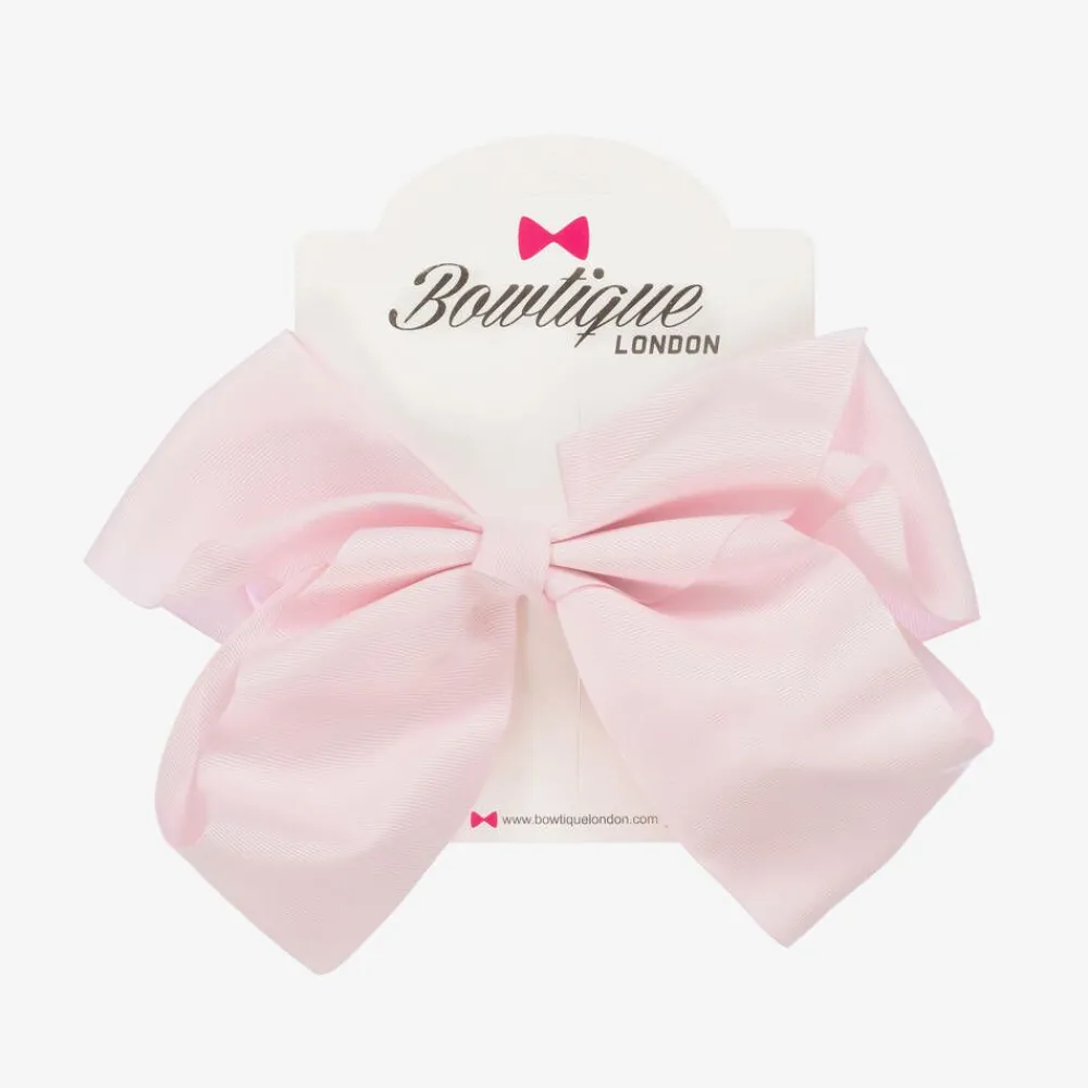 An extra large pale pink bow hair clip for girls by Bowtique London. Stunning and eye-catching, it is handmade in grosgrain ribbon with a slide-in metal clip.
