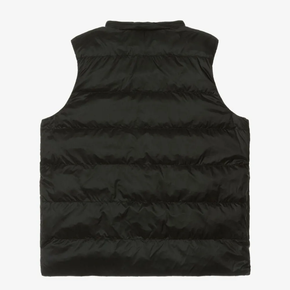In a reversible style, this beige gilet for teen girls is from luxury British fashion house Burberry. One side features the bold oversized check in a basket weave print to make a statement, whilst the other side is plain black with side seam pockets. Fastening with poppers, it is down-filled for lightweight warmth and has a removable hood that zips onto to the neck.