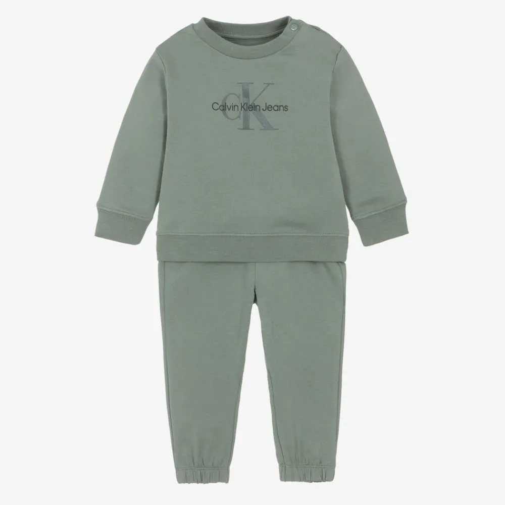 Calvin Klein Tracksuits*Baby Boys Green Cotton Monogram Tracksuit