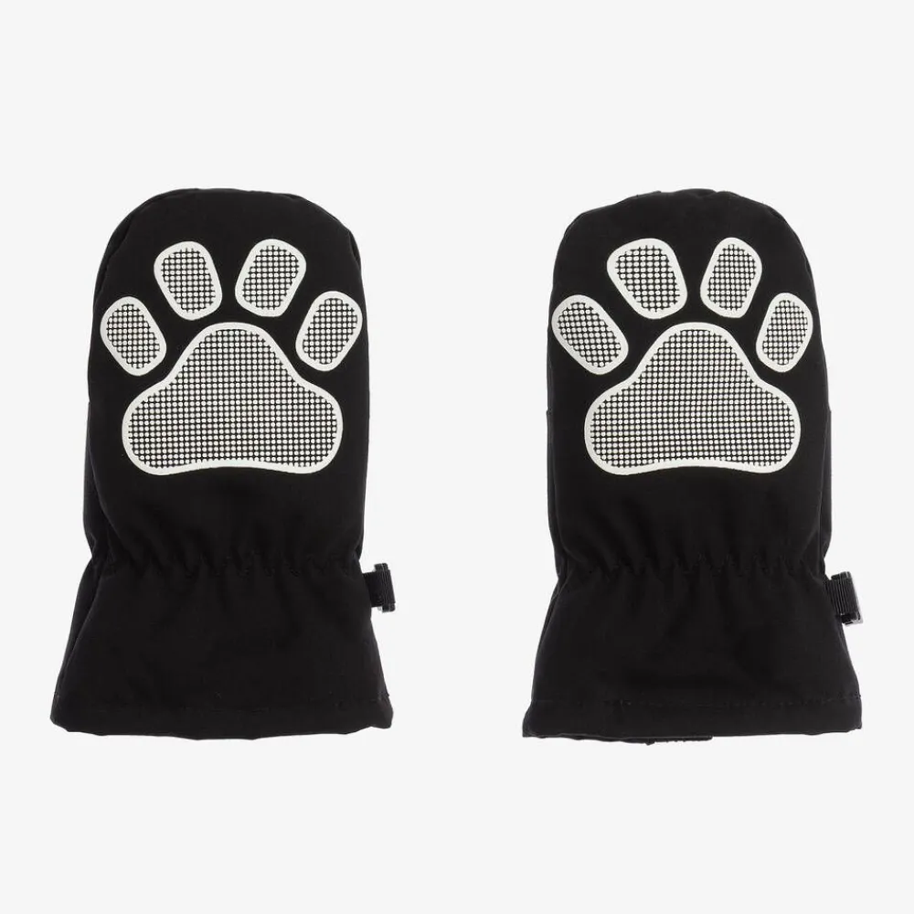 Designed to protect babies' little hands from extreme cold conditions, these black mittens for boys and girls are by luxury brand Canada Goose. Water resistant and durable, they are luxuriously down padded and lined in soft polar fleece for a comfortable, ultra-warm fit. Fastening with easy-to-use velcro, they have white logo prints and a cute rubberised white paw on the insides for extra grip. The buckle feature keeps both mittens safe, secure and together.