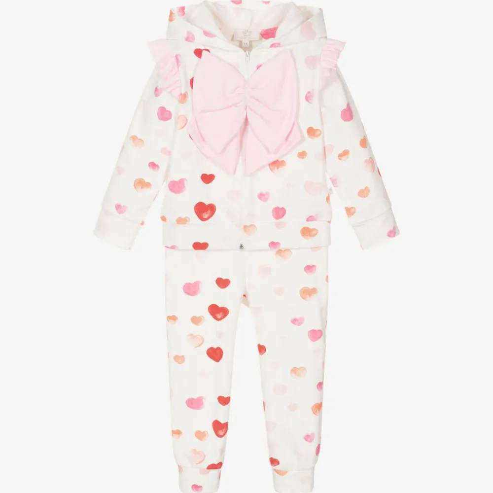 Caramelo Kids Tracksuits*Girls White Cotton Heart Print Tracksuit