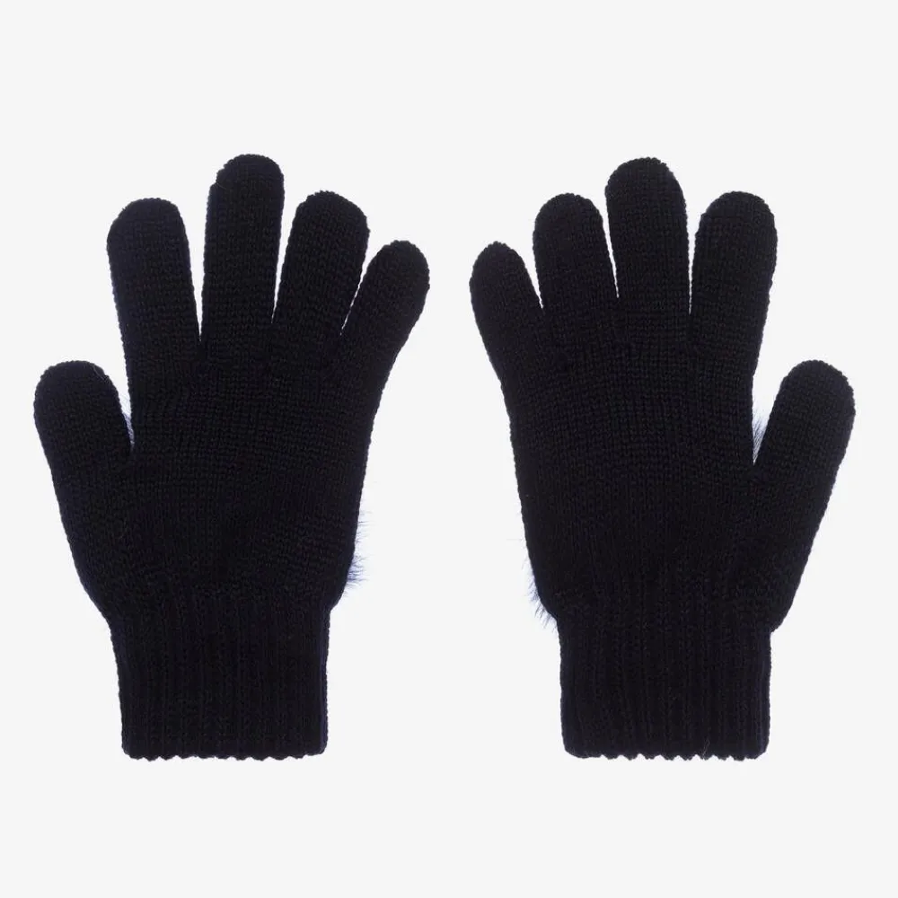 A stylish way to keep her hands cosy and warm, these navy blue gloves for girls are by Italian brand Catya. Knitted in luxuriously soft Merino wool with ribbed cuffs, they are topped with a gorgeous navy blue pom-pom in plush faux fur.