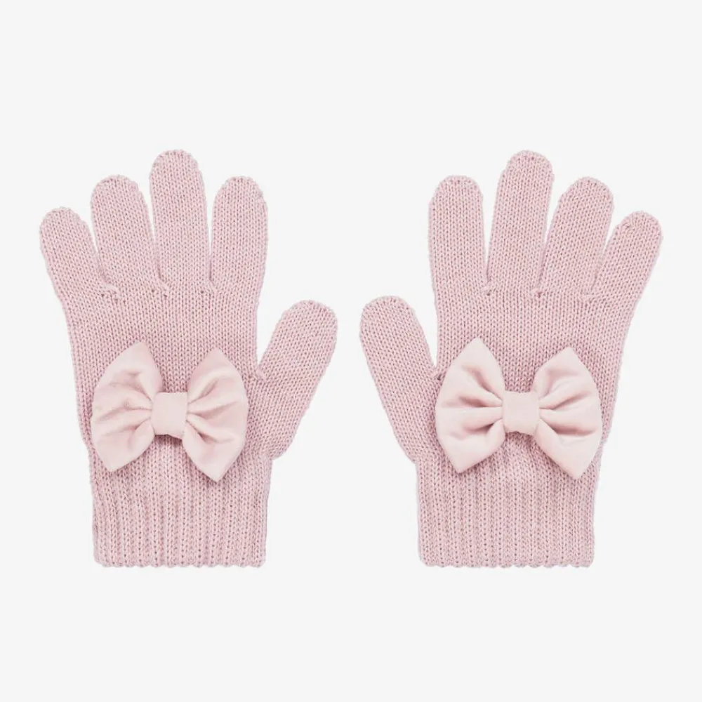Catya Gloves & Mittens*Girls Pink Wool Knit Bow Gloves