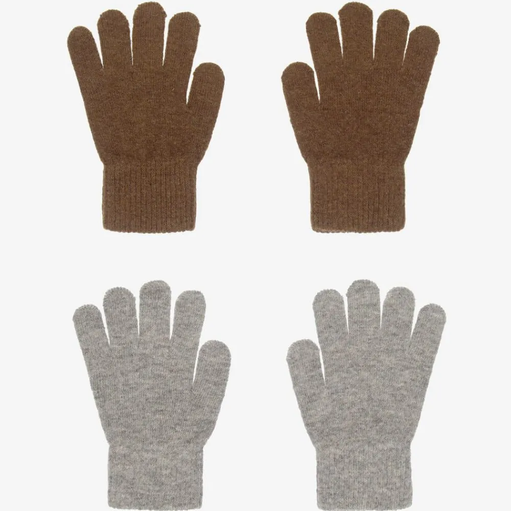 Pack of two, khaki green and grey gloves for boys and girls by Danish brand CeLaVi. Knitted in a super soft wool blend, they will keep little hands cosy and warm.