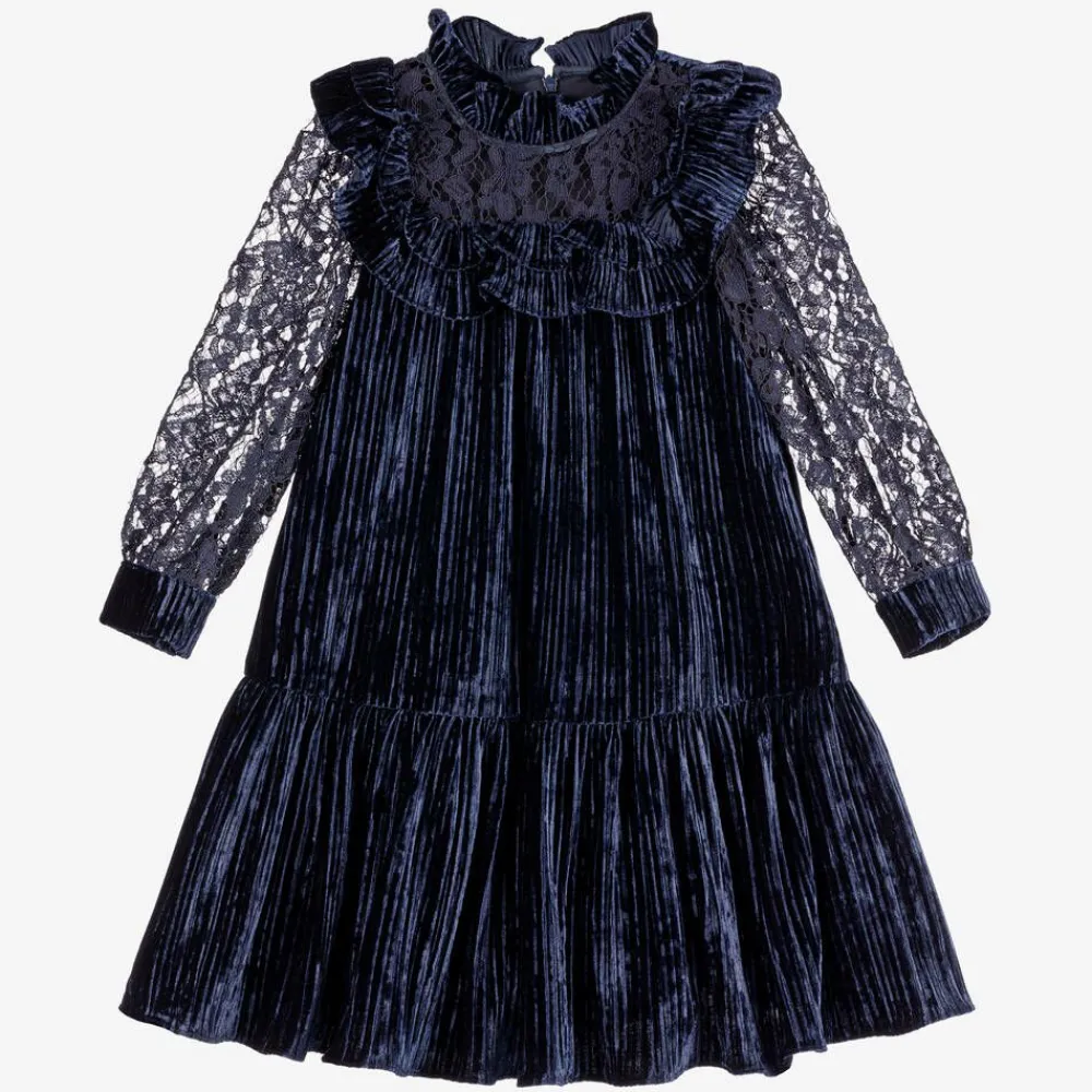 Childrensalon Occasions Dresses*Girls Blue Velour & Lace Dress