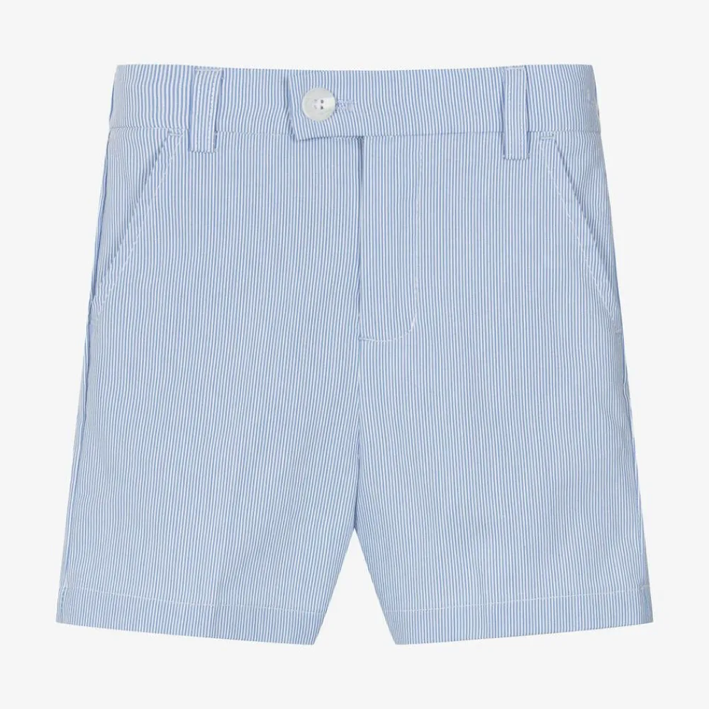 Childrensalon Occasions Shorts*Boys Blue & White Striped Cotton Shorts