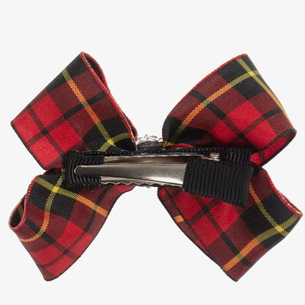 A pretty hair clip for girls by Cute Cute. Handmade, it has a red tartan bow with a sparkling diamanté centre.