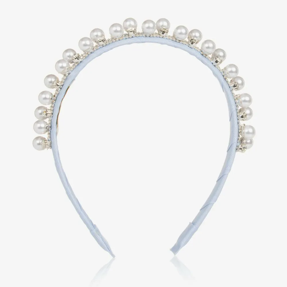 David Charles Hair Accessories*Girls Diamanté & Pearl Blue Hairband