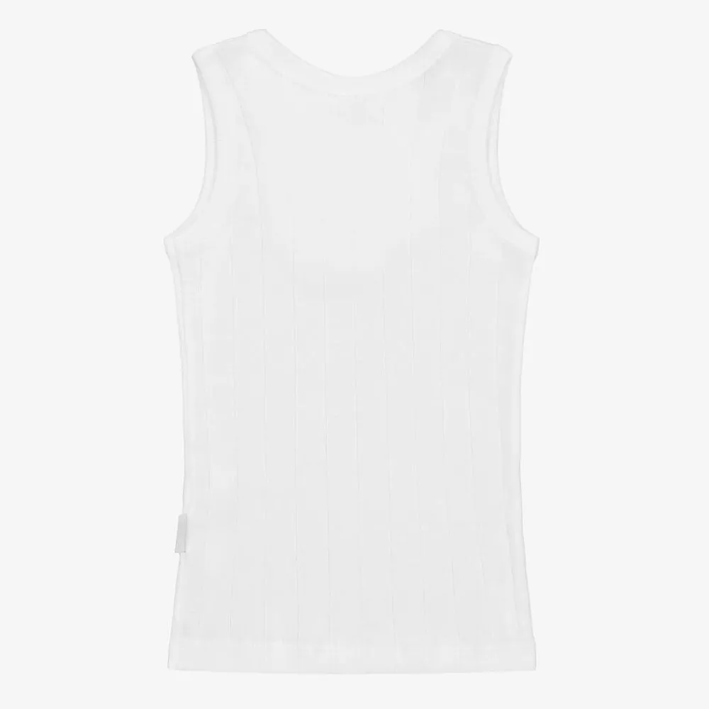 A white vest for boys by Diacar. Made from soft cotton jersey with a subtle pinstripe pattern, this simple top is comfortable to wear and easy to layer under clothes for additional warmth.