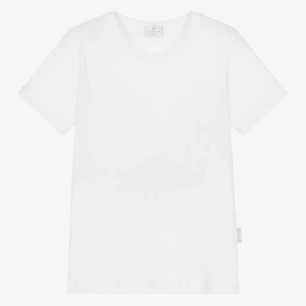 Simply styled, this white short-sleeved vest top for boys and girls is by Diacar. Made from soft cotton jersey, it is comfortable to wear and easy to layer under clothes for additional warmth.
