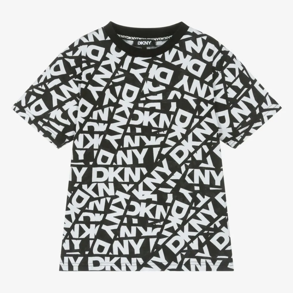 Black and white T-shirt for boys and girls by DKNY, made in soft cotton jersey. Cool and casual, this short-sleeved top is patterned with the brand's monochrome graphic print for instant designer appeal.