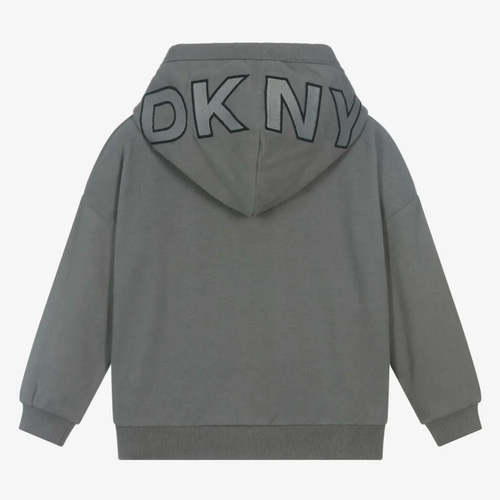 Cool grey hoodie for boys and girls by DKNY. Made in mid-weight cotton jersey with a super soft brushed feel and cosy ribbed trims, it is designed in a relaxed fit with dropped shoulders. The hood has a black waffle-textured jersey lining and a bold embroidered logo. Completing the look with a distinctive designer touch, there is an embroidered logo patch on the chest.