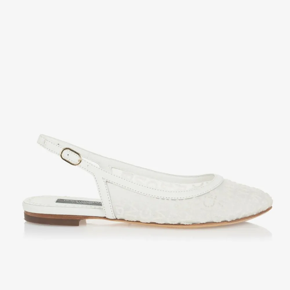 Dolce amp; Gabbana Pumps & Ballerinas|Pumps & Ballerinas*Girls White Leather & Mesh Slingback Pumps