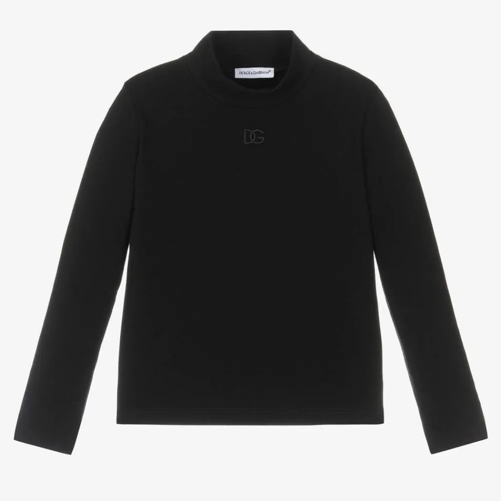 Dolce amp; Gabbana Tops*Girls Black DG Cotton Turtleneck Top