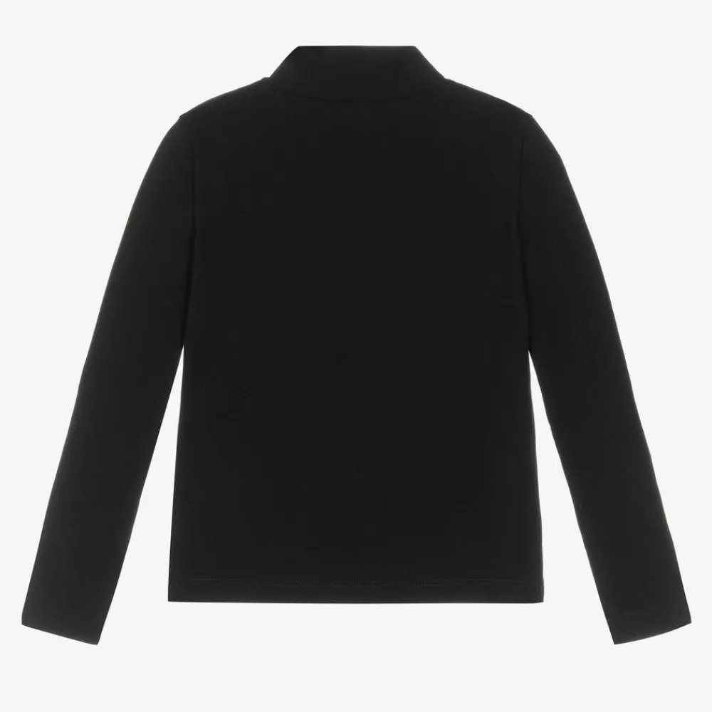A black Mini-me turtleneck top for girls by luxury Italian brand Dolce & Gabbana, made in soft cotton jersey. Inspired by the adult collection, it has the iconic crossover DG logo embroidered on the front for a signature designer look.