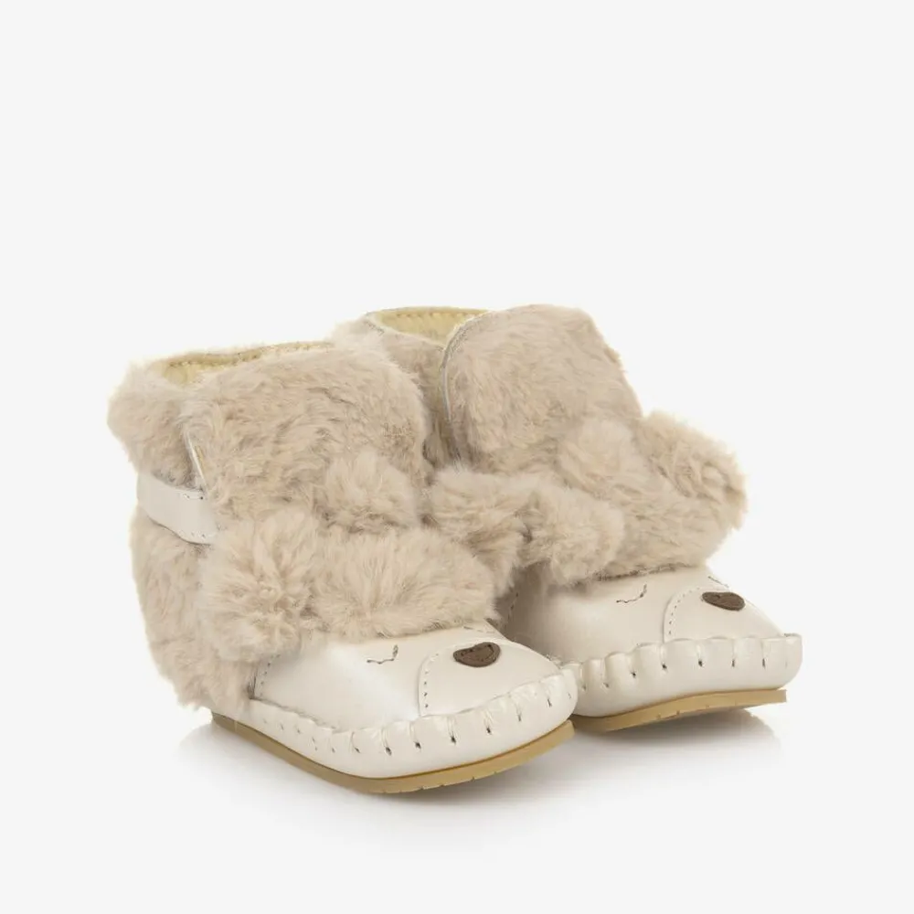 Donsje Pre Walkers|Pre Walkers*Beige Leather & Faux Fur Poodle Pre-Walkers LightBeige