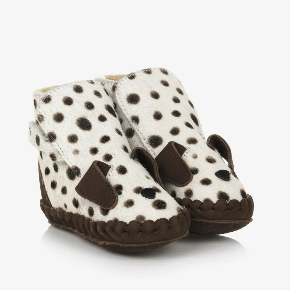 Donsje Pre Walkers|Pre Walkers*Ivory & Brown Leather Dalmation Pre-Walkers