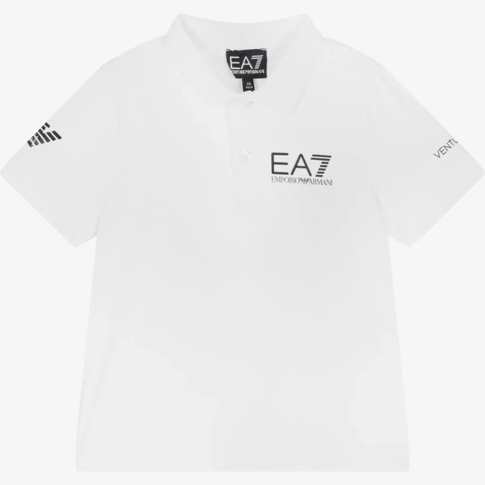 EA7 Emporio Armani Activewear*Boys White Ventus7 Sports Polo Shirt