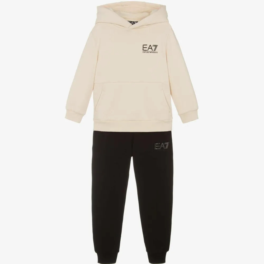 EA7 Emporio Armani Tracksuits*Boys Ivory & Black Cotton Tracksuit