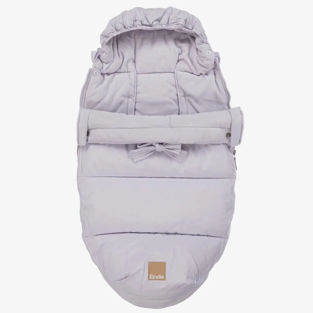 A lilac purple waterproof footmuff for baby boys and girls by Elodie, with a detachable faux fur trim. Ideal for those colder days, it is warmly padded and lined with soft and cosy fleece. The universal design ensures it can be used in any pram or stroller, with pre-cut holes on the back to secure the harness safely and a pocket flap to prevent it from sliding down. It fastens with a zip all around, allowing the front to be removed in warmer temperatures.