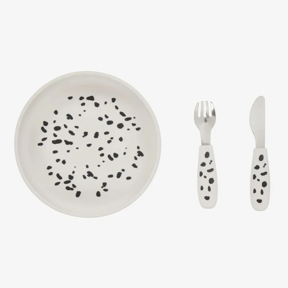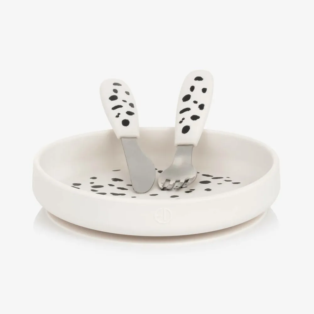 Elodie Lunch Accessories|Lunch Accessories*White Dalmatian Silicone Plate & Cutlery Set