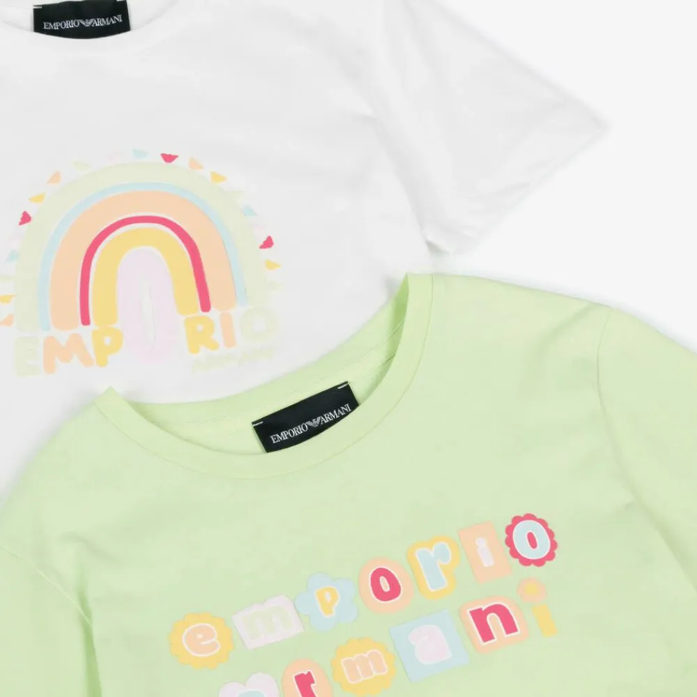 Emporio Armani Tops*Girls White & Green Cotton T-Shirts (2 Pack)