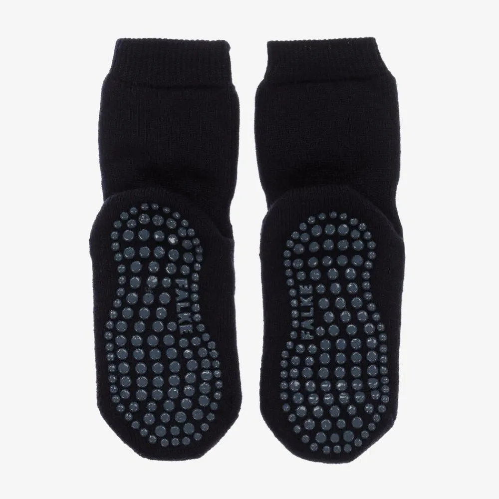 Durable and functional, these navy blue slipper socks for boys and girls are from Falke. They are made in a super soft cotton and wool blend, cushioned for comfort with stretchy elasticated trims. These high-quality socks are finished with rubberised pads on the soles, offering anti-slip stability for playful kids.