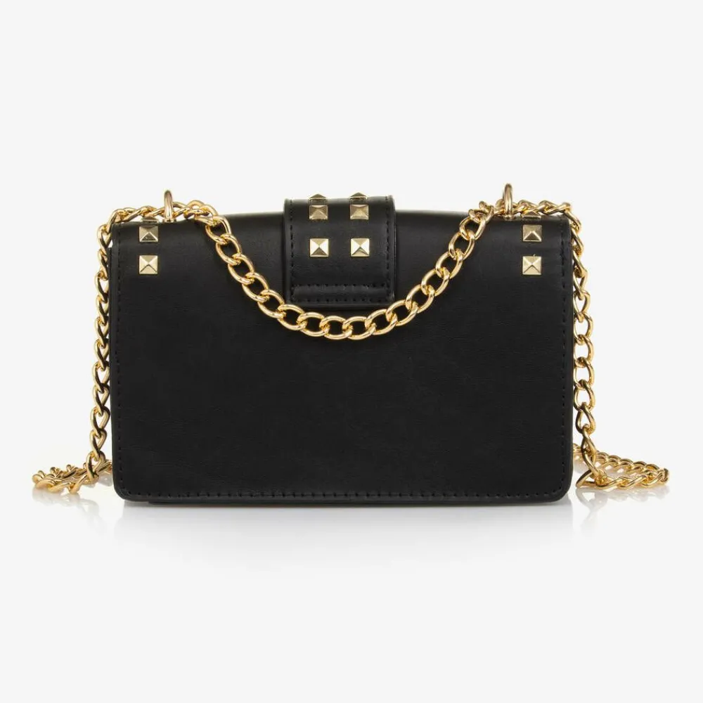 Cool black faux leather shoulder bag for girls from H.Love by Fun & Fun. The compartment is separated into three sections for easy organisation and gold studs on the front give an edgy alternative finish.