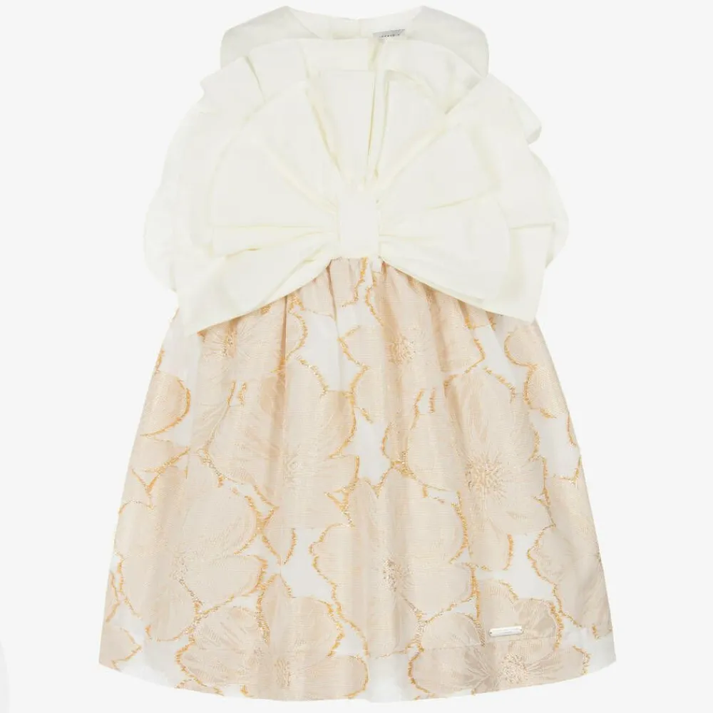 Jessie and James London Dresses*Girls Ivory & Gold Floral Jacquard Dress