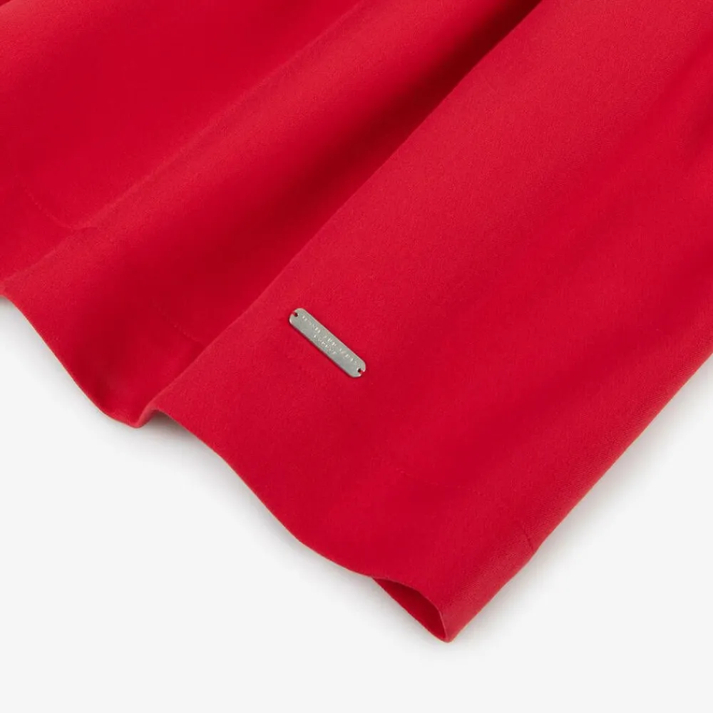 From Jessie and James London, a stunning ivory and red sleeveless dress for girls, made with cotton for comfort. The twill bodice has an eye-catching ruffled rosette detail and the softly woven skirt is gathered for a charming silhouette. Fully lined with lightweight cotton, the dress fastens discreetly with a concealed zip.
