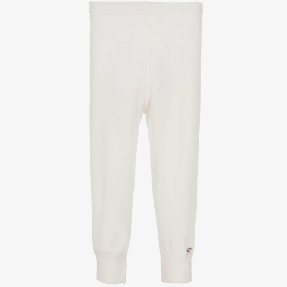 Ivory thermal leggings for boys and girls by Joha. They are made in a soft and stretchy Merino wool and cotton blend, with a comfortable elasticated waist.