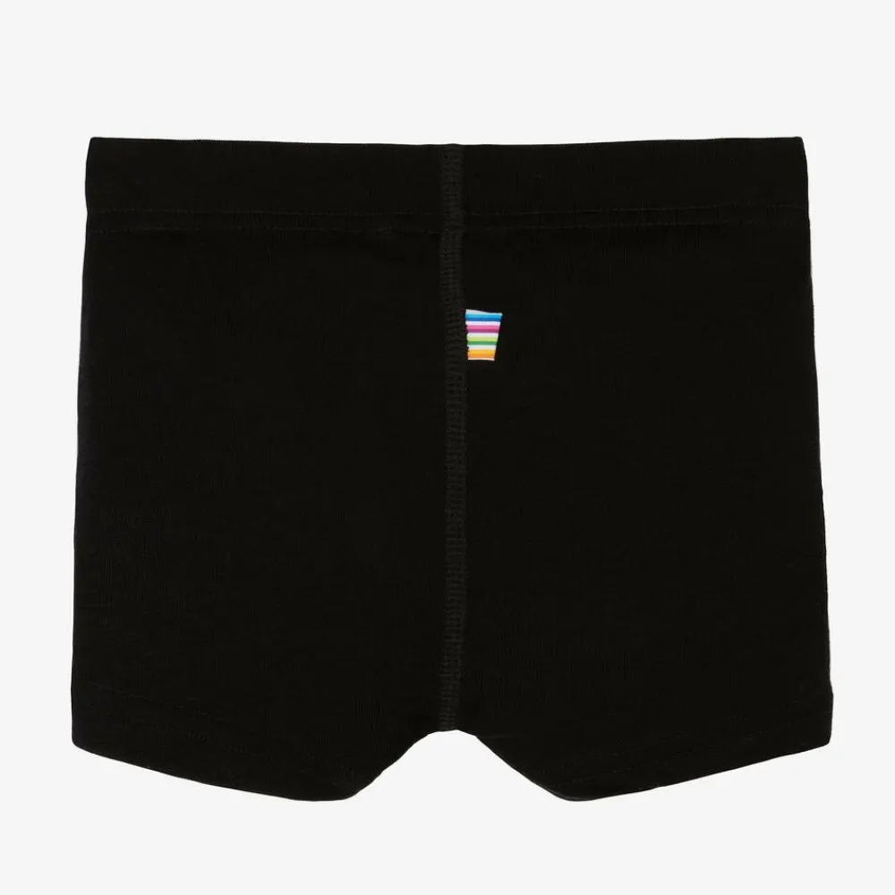 Black thermal boxer shorts for boys by Joha, made from a luxurious Merino wool and silk blend. These comfortable boxers have an elasticated waistband and a striped rainbow logo tab stitched on the back seam.