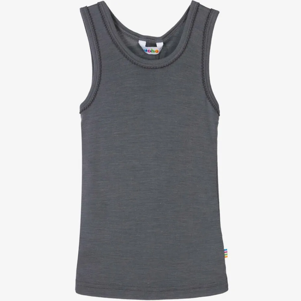 Grey thermal vest for boys and girls, by Danish designer Joha. Made in beautifully soft and lightweight Merino wool and silk, it is designed to layer underneath your outfit for extra warmth.