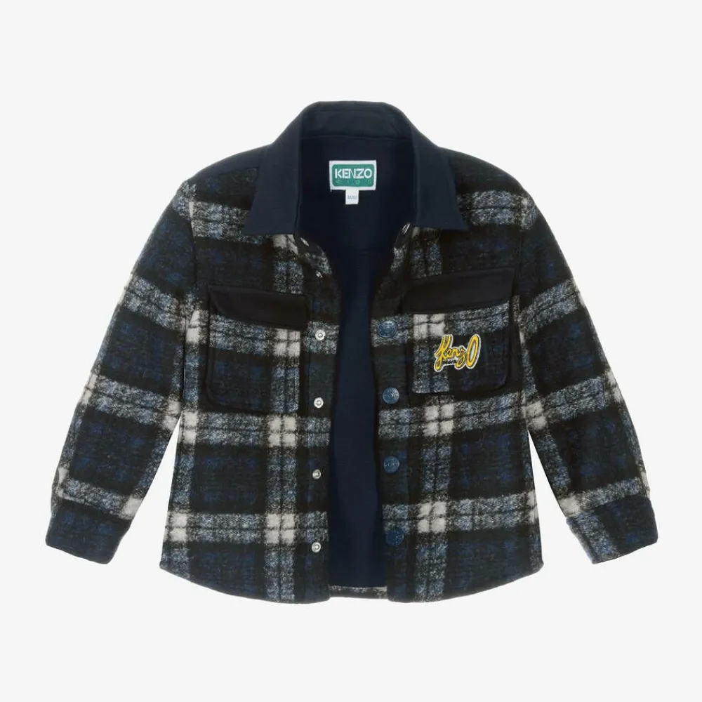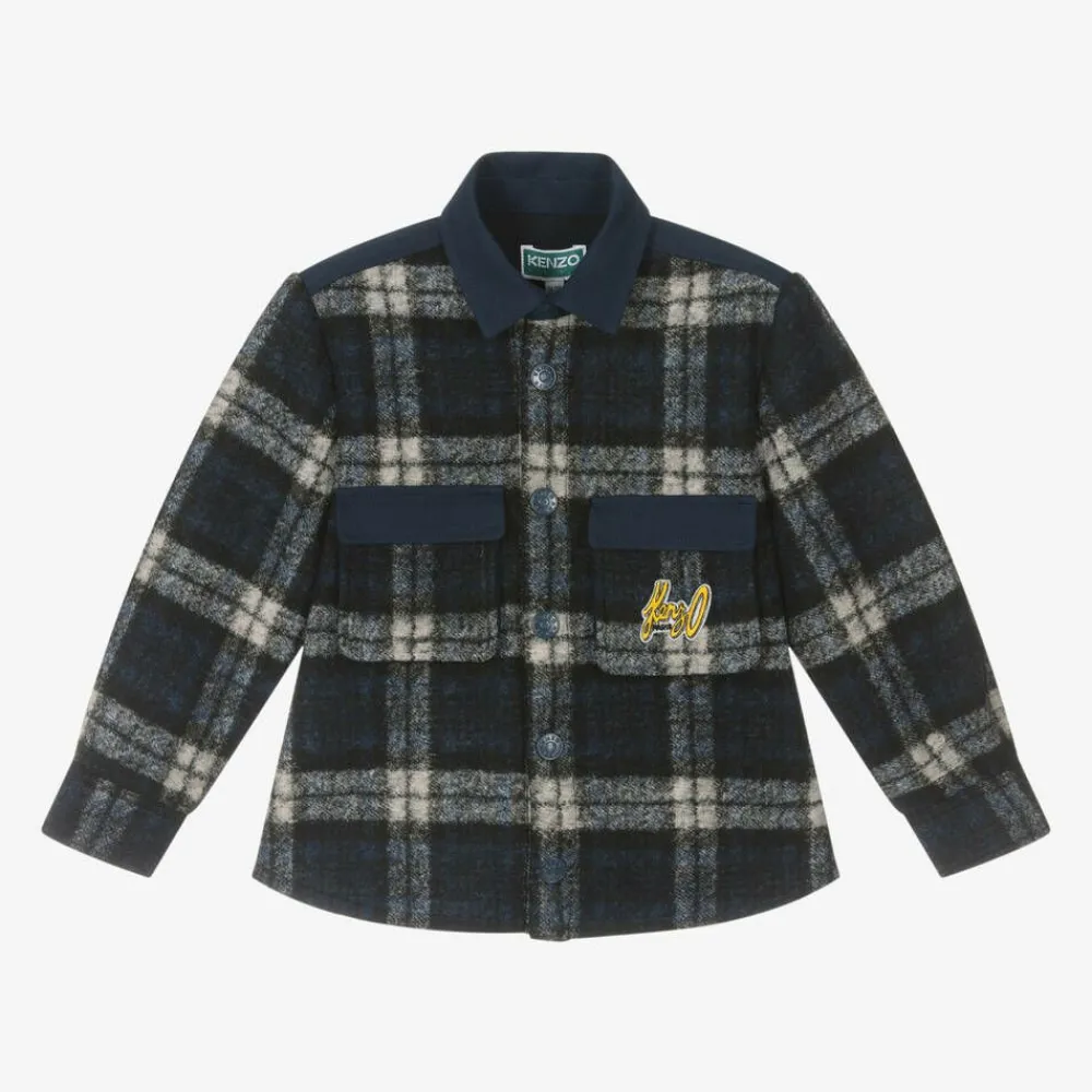 KENZO KIDS Tops*Boys Navy Blue Check Shacket
