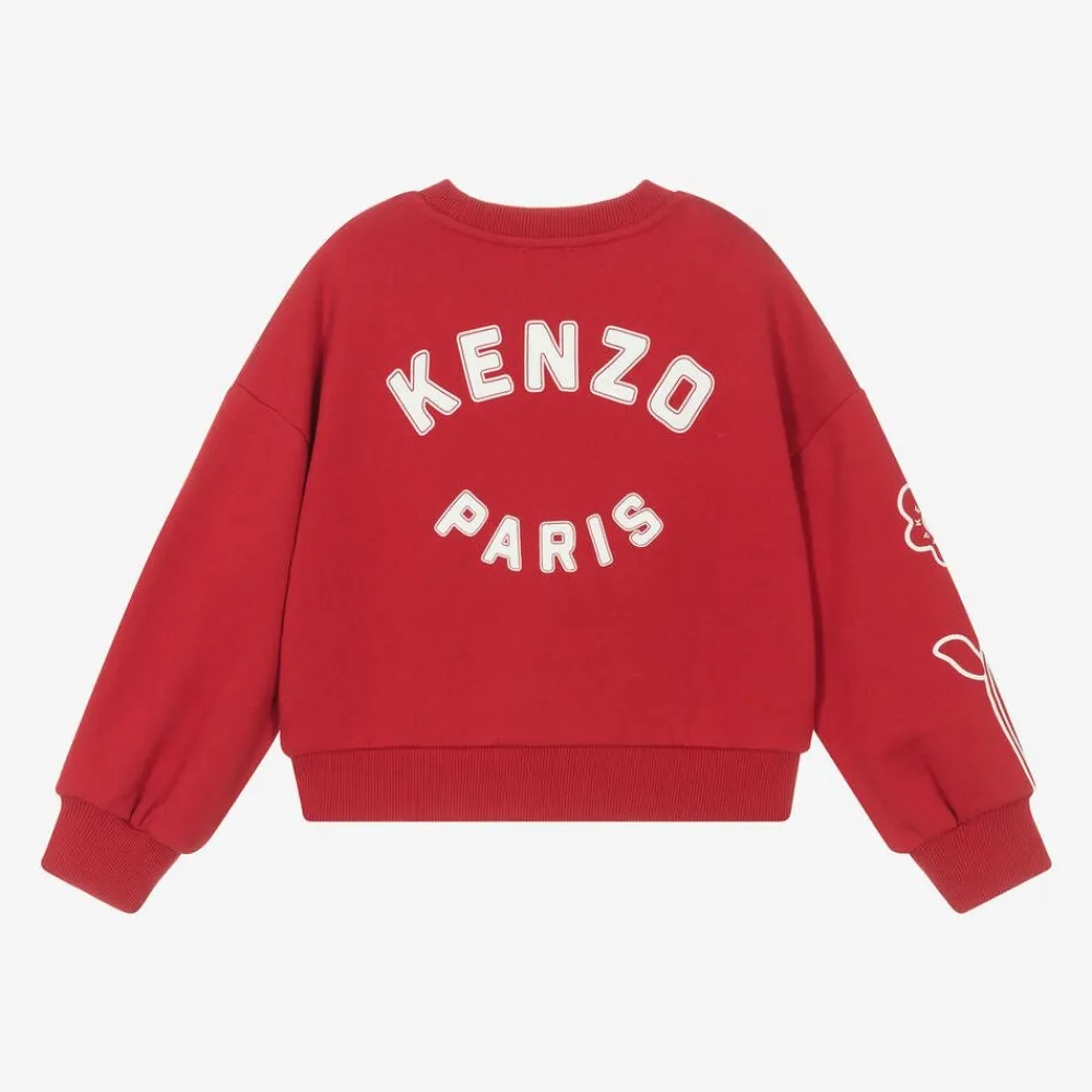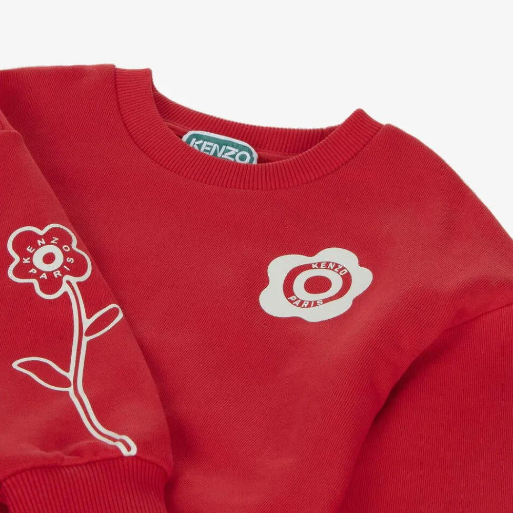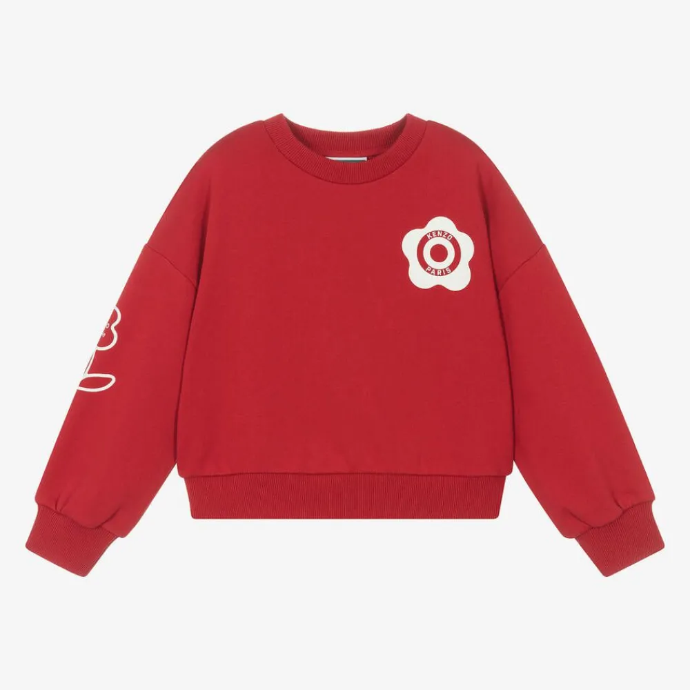 Casual red sweatshirt for girls by KENZO KIDS, made in soft cotton jersey. The brand's iconic Target Flower logo is printed on the chest for a recognisable look, with an additional flower on one of the long sleeves. Styled in a boxy fit, this layering piece has a stand-out logo print on the back for a bold finish.