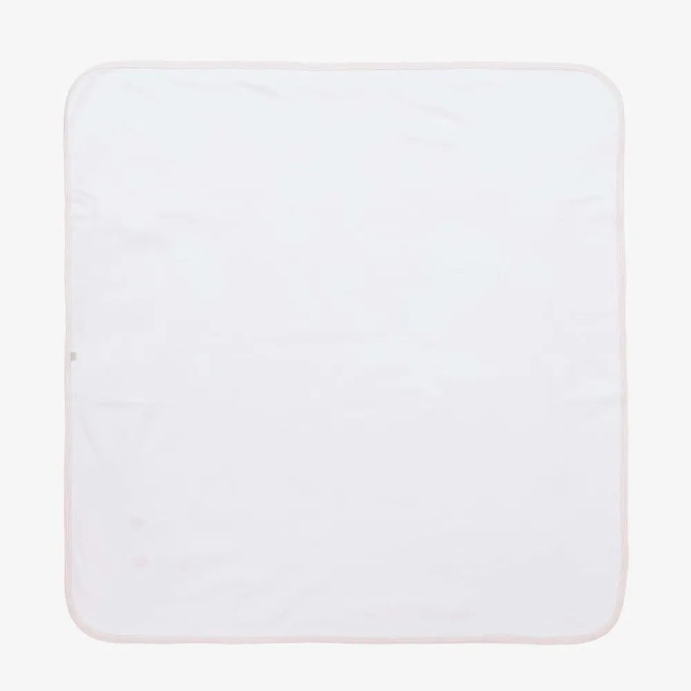 A sweet pink striped blanket for baby girls by Kissy Kissy. Soft and comfortable, it is made from smooth Pima cotton jersey. On one corner there are beautifully hand-embroidered jungle animals in pastel colours for an adorable finish.